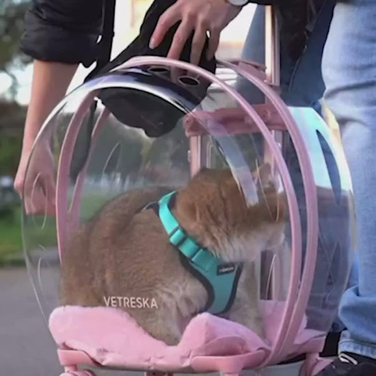 Transparent Capsule Pet Travel Bag Backpack for Puppies Dogs Cat Carriers Bag with Trolley Wheel,Easy Carry for car Traveling.